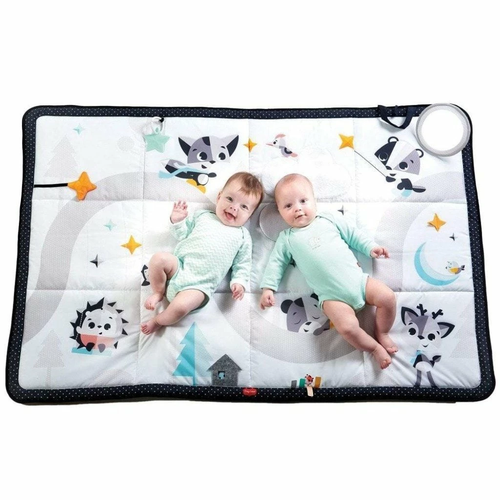 The extra-large play mat has a beautiful design with various activities to keep your little one entertained, such as its engaging peek-a-boo game, an easy-grip star teether and a stand-alone tummy time mirror.