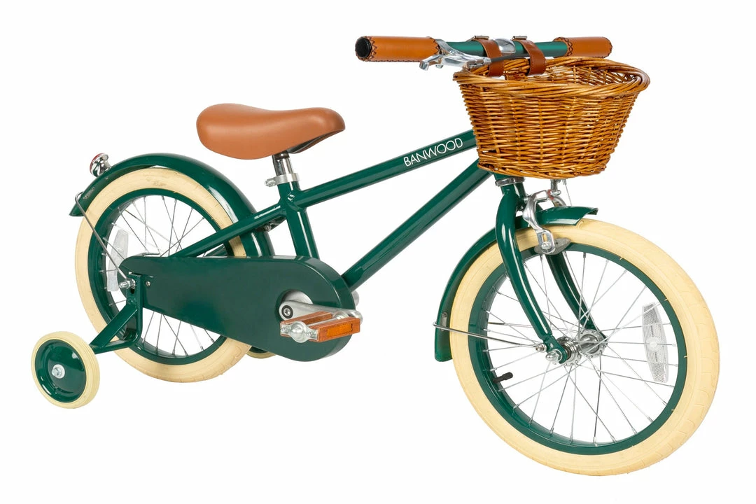 Vintage children’s bike with 16” tires, has a nice balance of Scandi and timeless design. This kids’ retro bike is suitable from 4 to 7 years and comes with stabilisers (training wheels) to use until they are ready for two wheels.