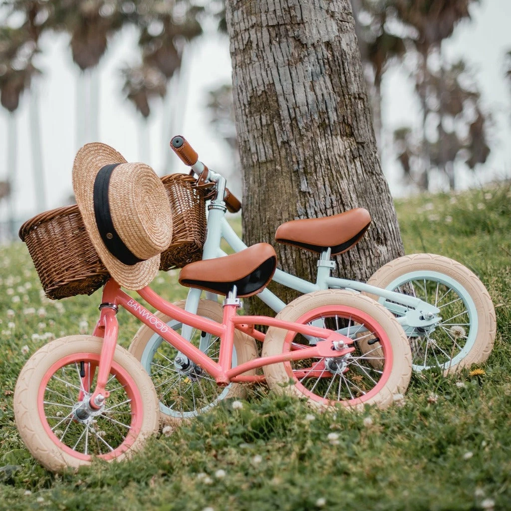 The saddle and grips of this cute coral pink toddler bike is made of faux leather, a material suitable for all weather conditions and easy to keep clean.