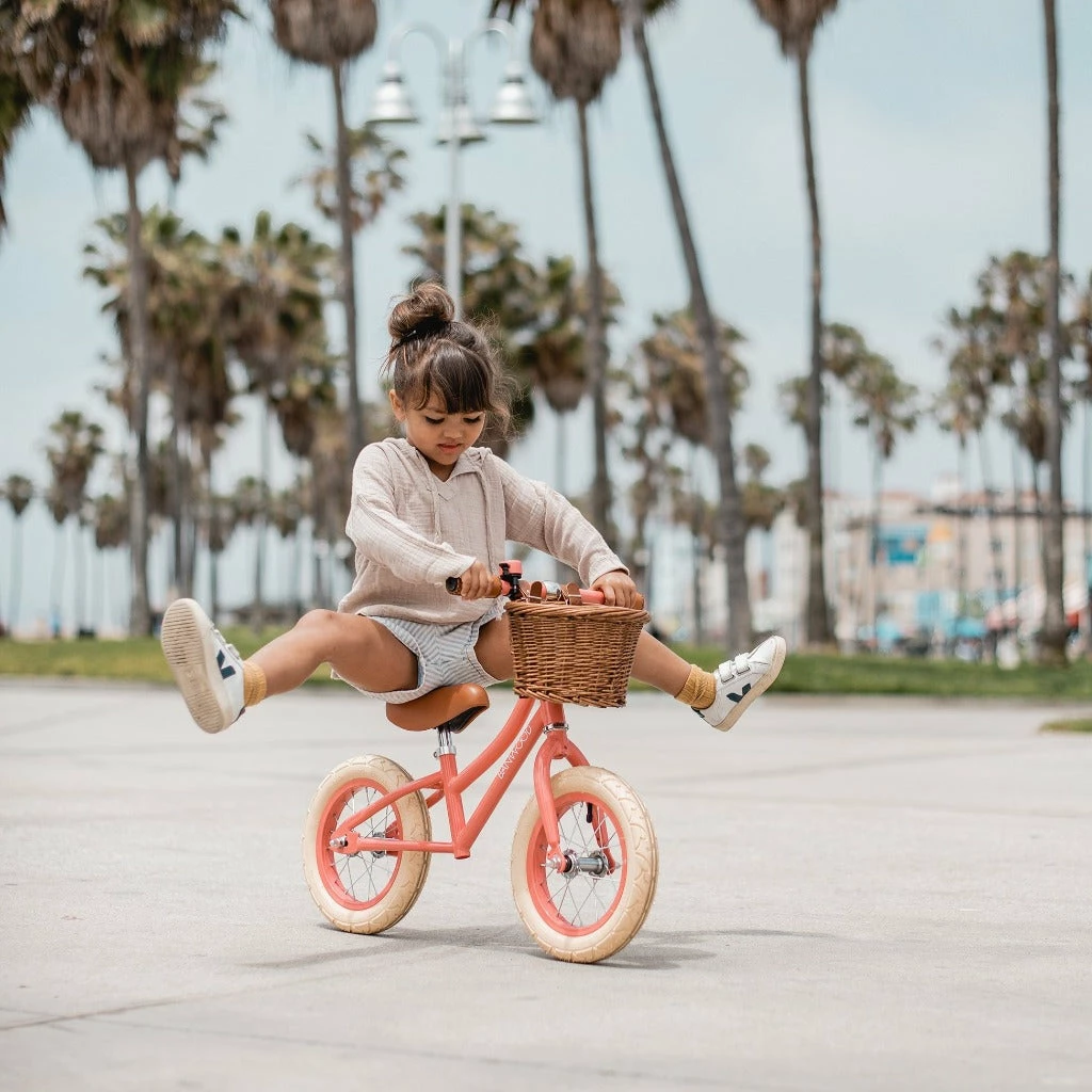 Forget about training wheels! FIRST GO! Coral pink balance bike is suitable for children from 2,5 to 5 years old and develop the skills needed to ease transition to a pedal bike.