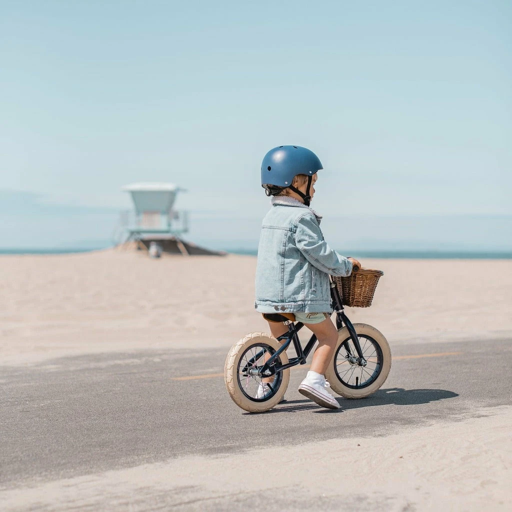 The bike has a durable and child-friendly frame in blue finished steel, inspired by the design of vintage bicycles. The saddle is adjustable and has a soft padding for a comfortable ride. The grips and saddle is made of high end faux leather, suitable for all-round weathers and easy to wipe off after a day outside.