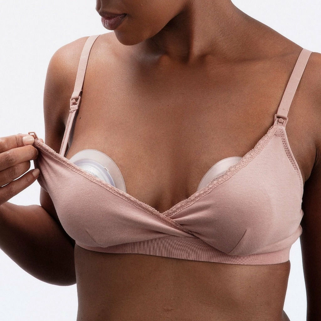 Elvie Catch has a smooth profile and sits inside your bra, so that you can discreetly collect milk and go about your day.