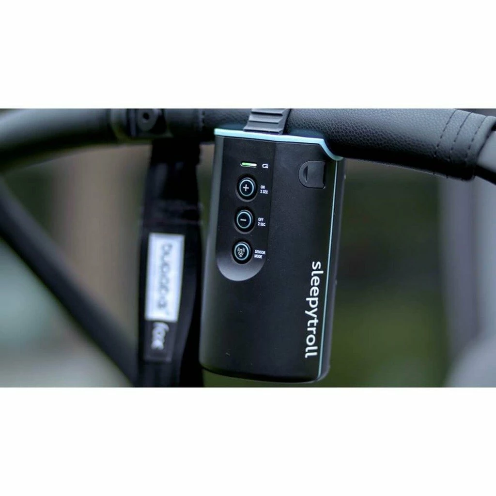 Sleepytroll has a built-in sound and motion sensors that starts to gently rock your stroller when sound or motion is registered.