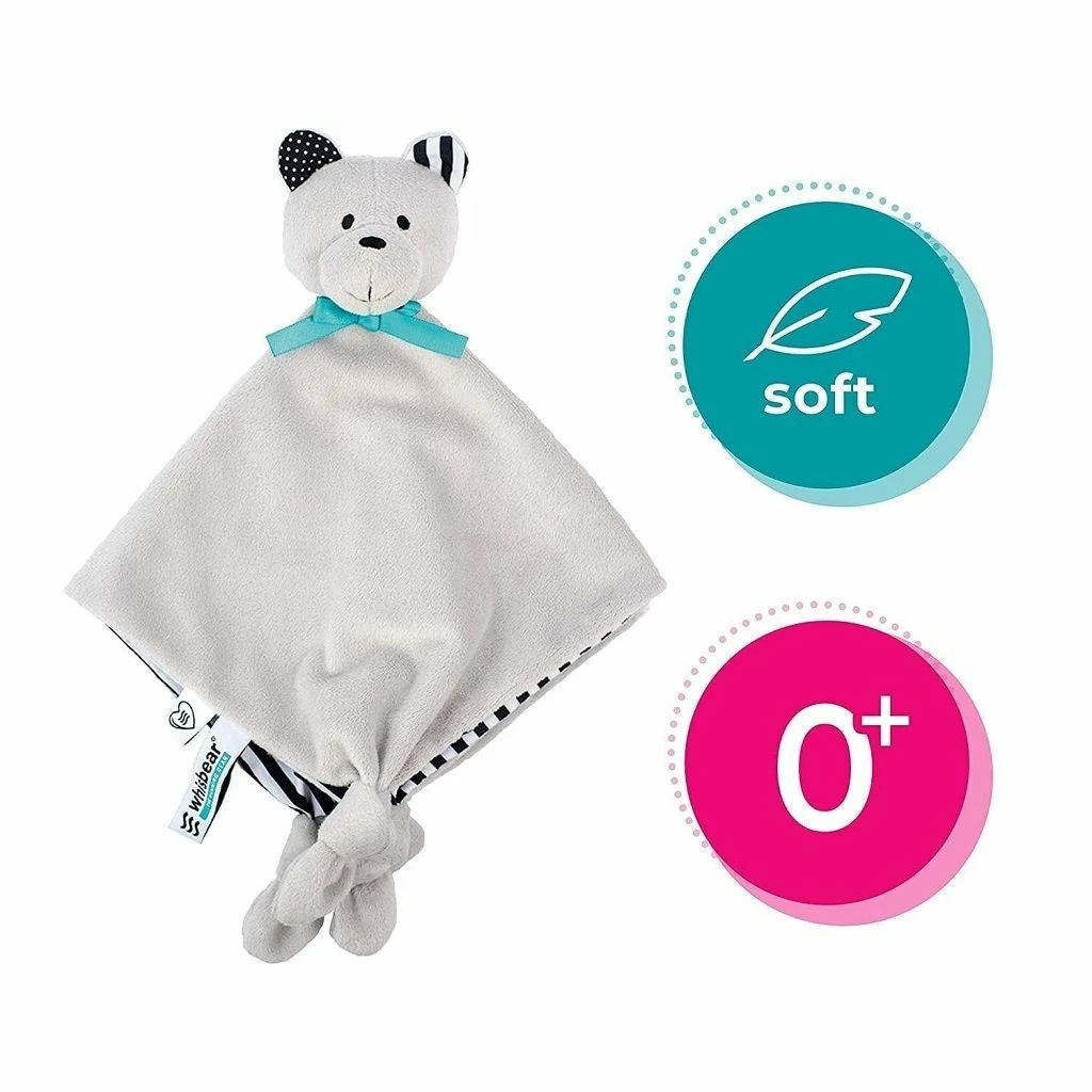 The blanket, made of safe, certified materials, is also a cuddly toy with the head of Whisbear The Humming Bear. Black and white stripes on the inside fabric support the baby’s sensory development. Tied knots make attaching the favourite pacifier or teether easier, making this Whisbear product a multifunctional item.