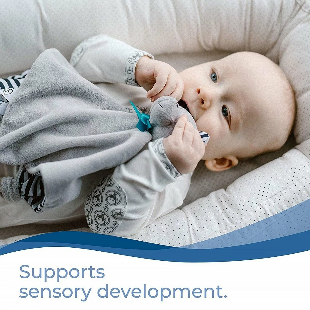 Cuddly blanket bear accompanies you at home and outside. The parent’s scent on the blanket increases the baby’s sense of security, where ever they are.