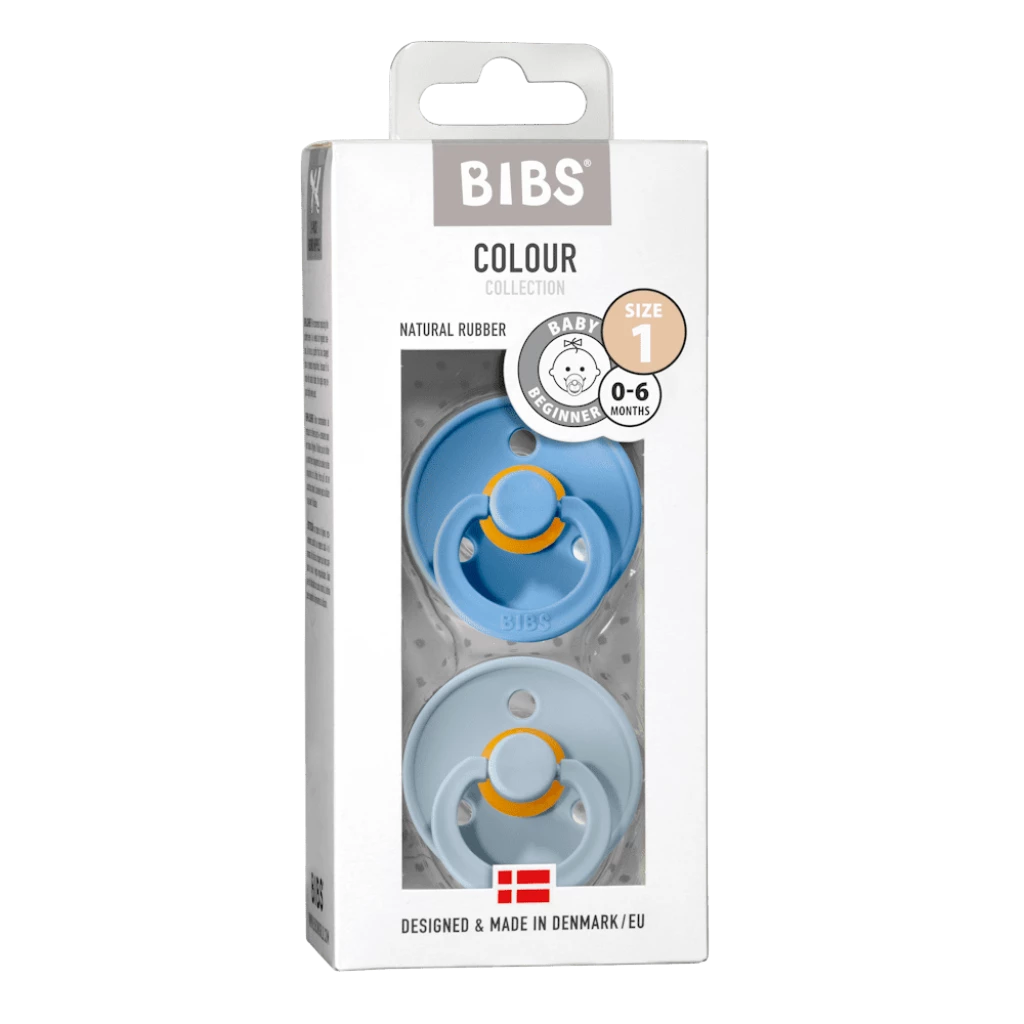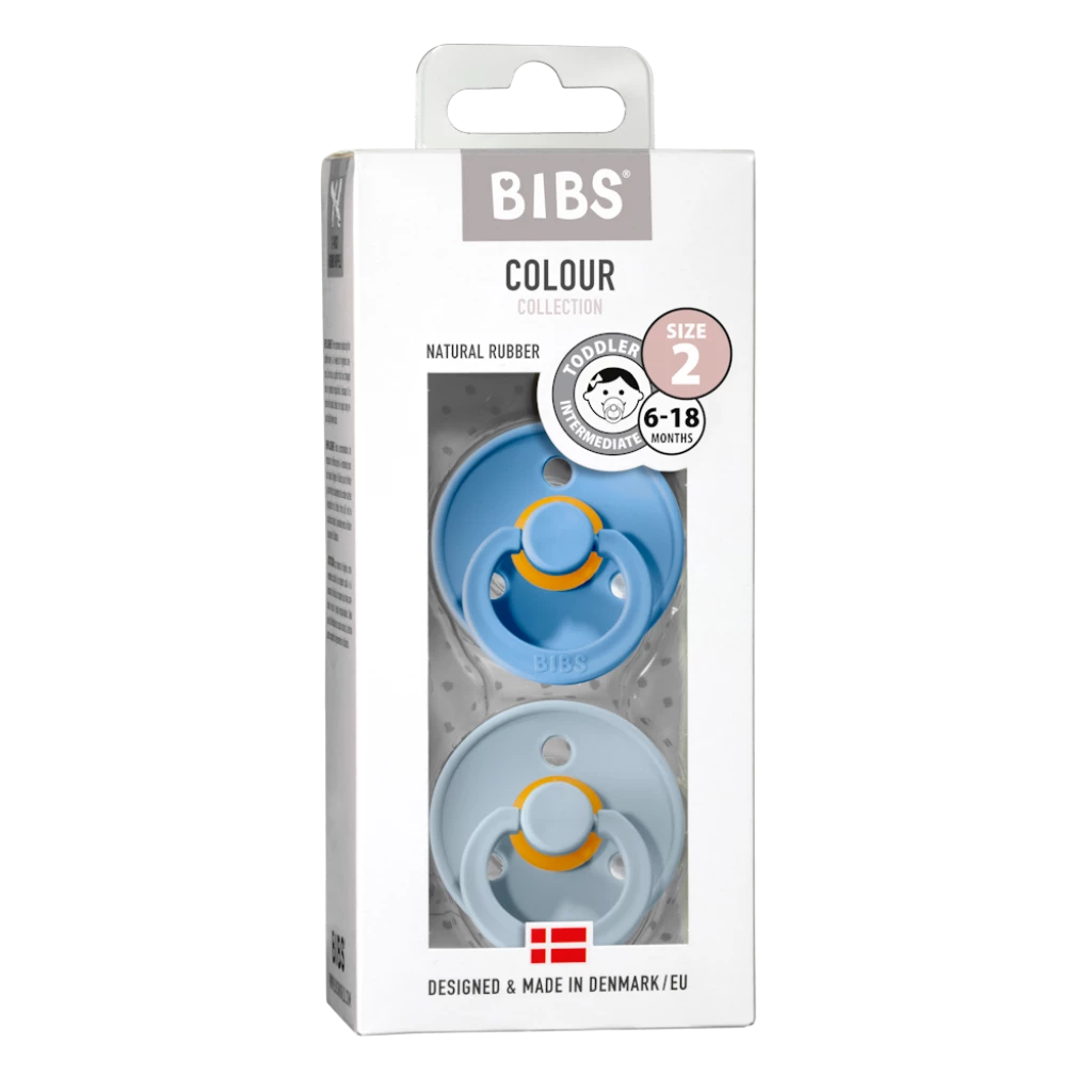 Good to know:Â Set of 2 BIBS COLOUR BPA-free natural rubber pacifiersÂ