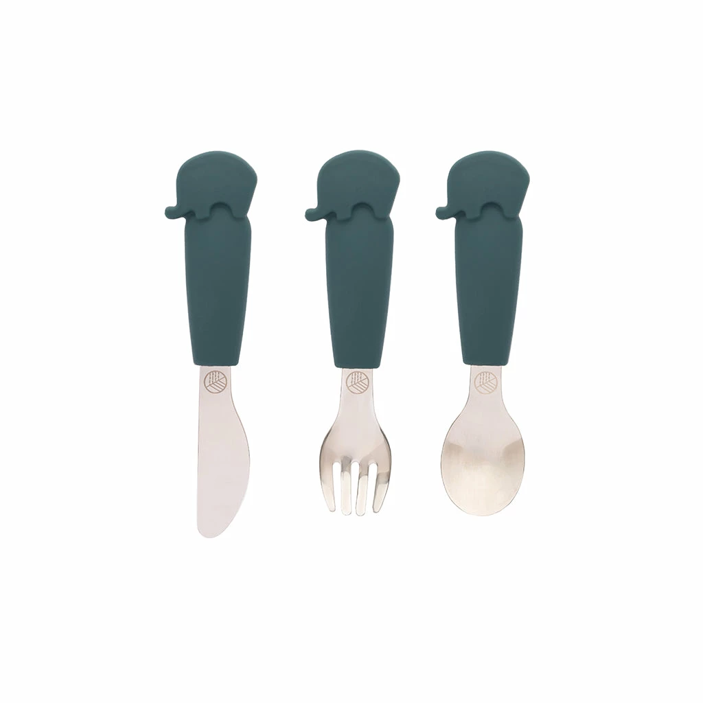 The elephant cutlery sets are available in silver and teal which matches the silicone divider suction plate and bib.