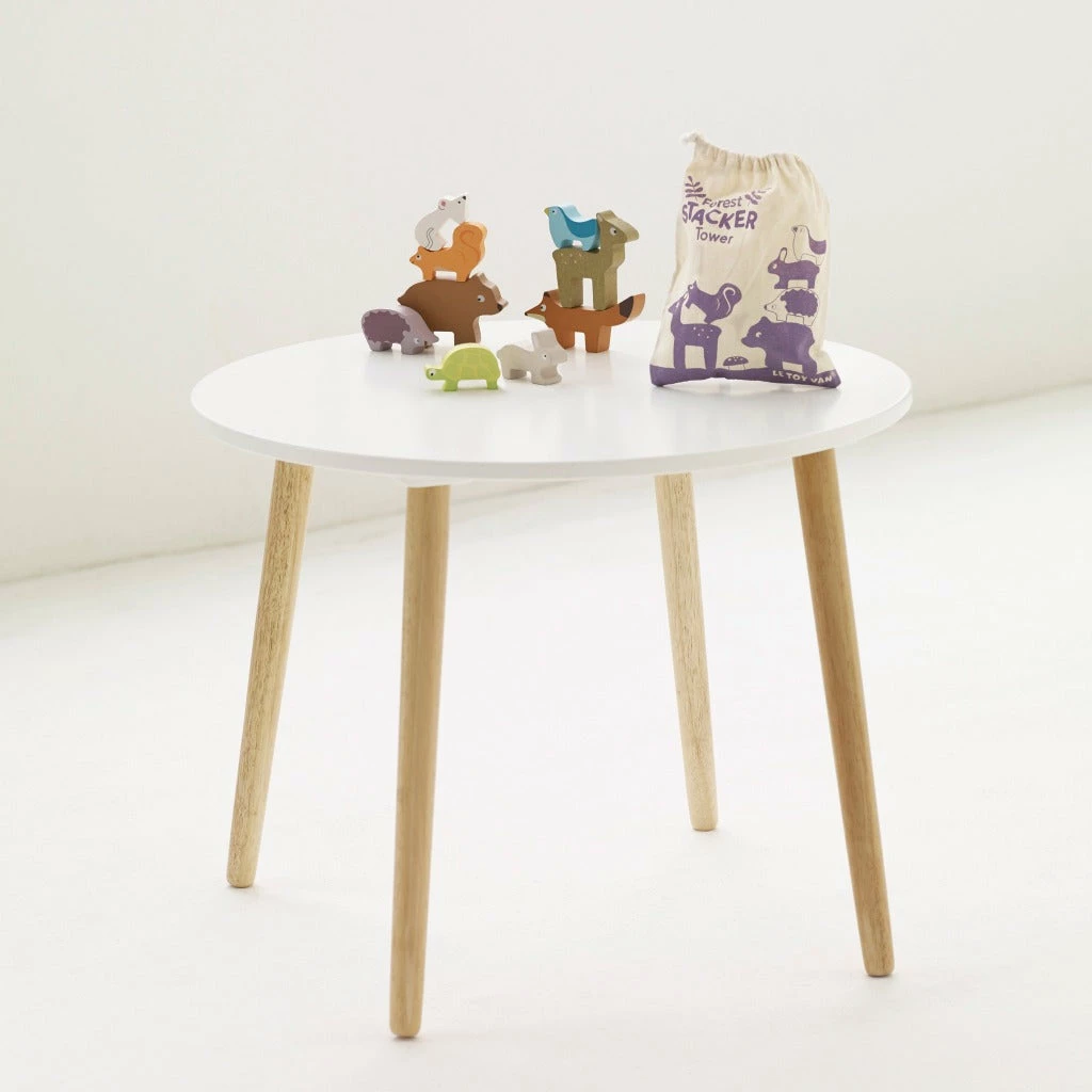 A set of 9 wooden stacking animals complete with handy draw string bag to play anywhere.