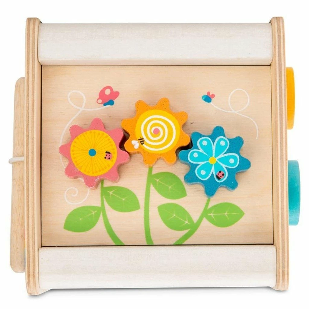 A multi-functional compact wooden petit activity cube, beautiful and complete little wooden activity centre for toddlers.