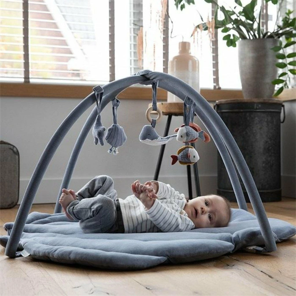 The colourful toys of cheerful marine animals on the arches encourage babies to touch and discover them.