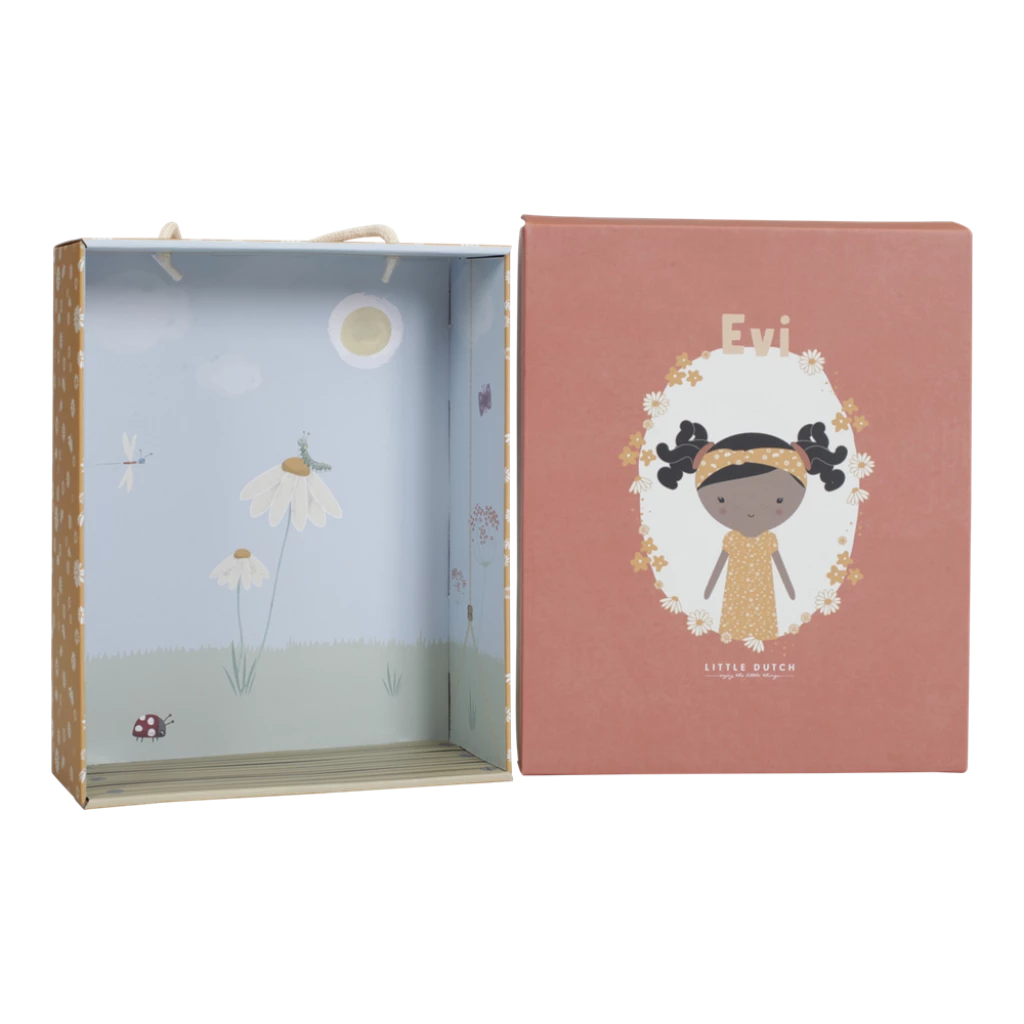 The Little Dutch Dolls are cuddly & cute. Meet lovely Evi. This plush cuddle doll from Little Dutch in a cute dress wants to be cuddled. Evi can sit up and likes to go with you in the Little Dutch wooden doll stroller.