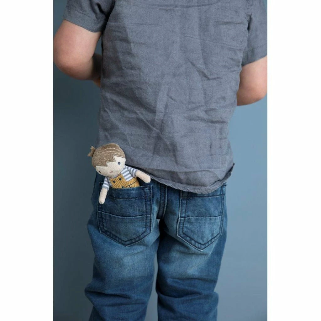 The Little Dutch Dolls are cuddly & cute. Meet Jim, the cute plush cuddle doll in his cool dungarees is soft and lovely to cuddle with. Jim can sit up and likes to go out on all the adventures with you, including sitting in the wooden stroller.