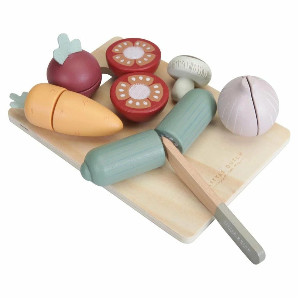Cooking together is so much fun! Chop the vegetables in half with the wooden knife and become a top chef. The included vegetables are: a carrot, a cucumber, a tomato, an onion, a beetroot and a mushroom.