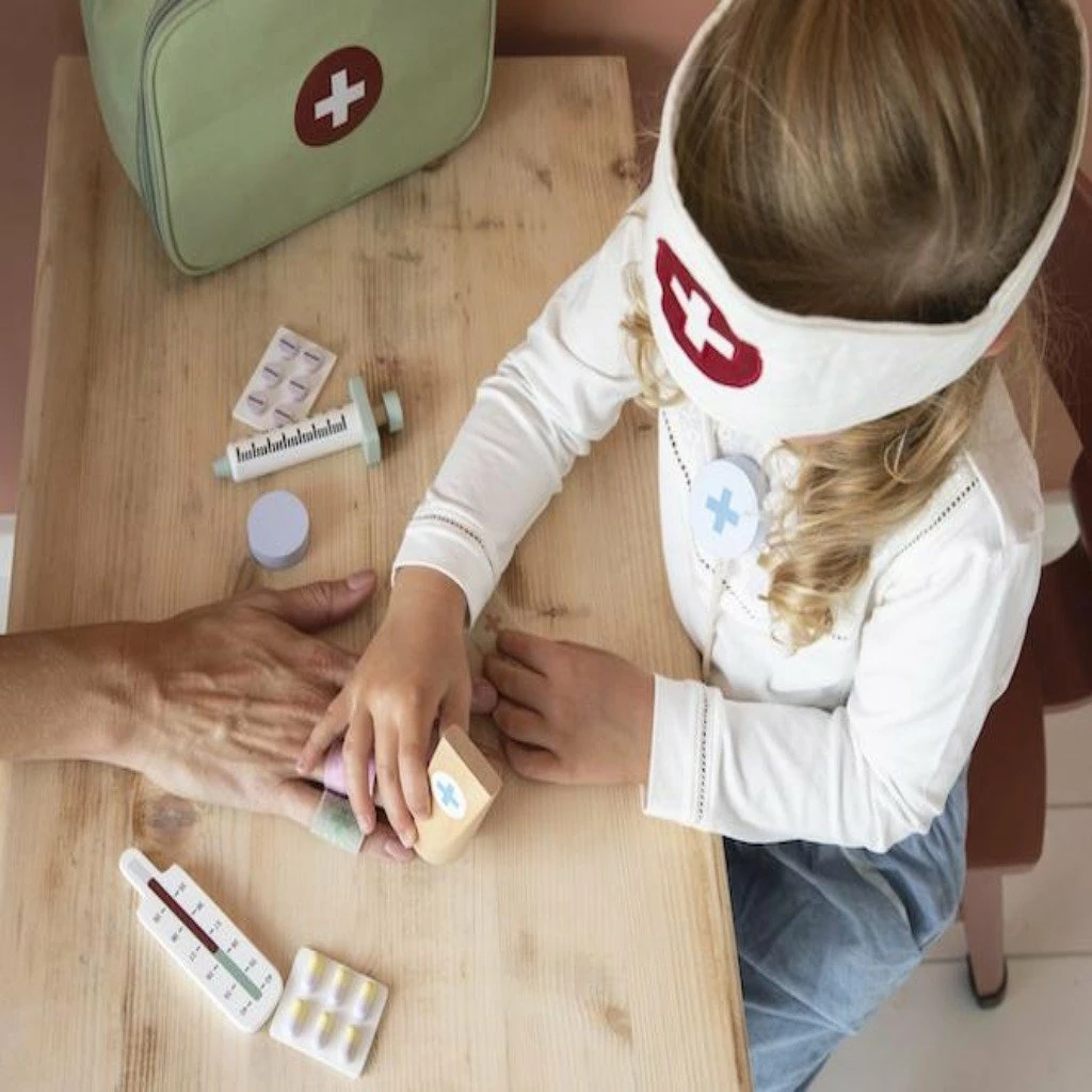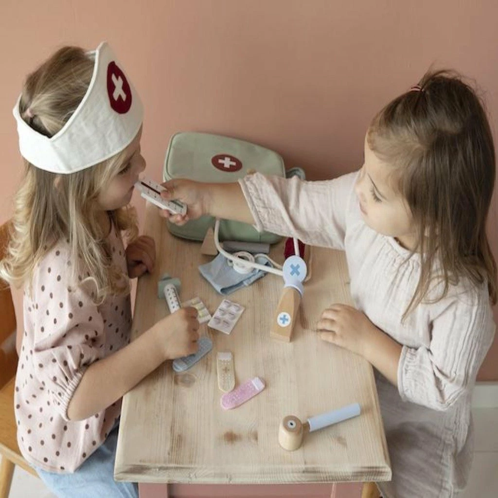 The Little Dutch Doctor’s Bag Play Set is a great set to boost imaginative play, it is perfect for encouraging children to be empathetic and learn how to treat patients.