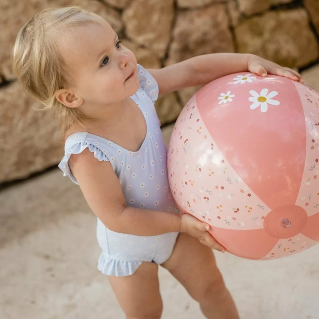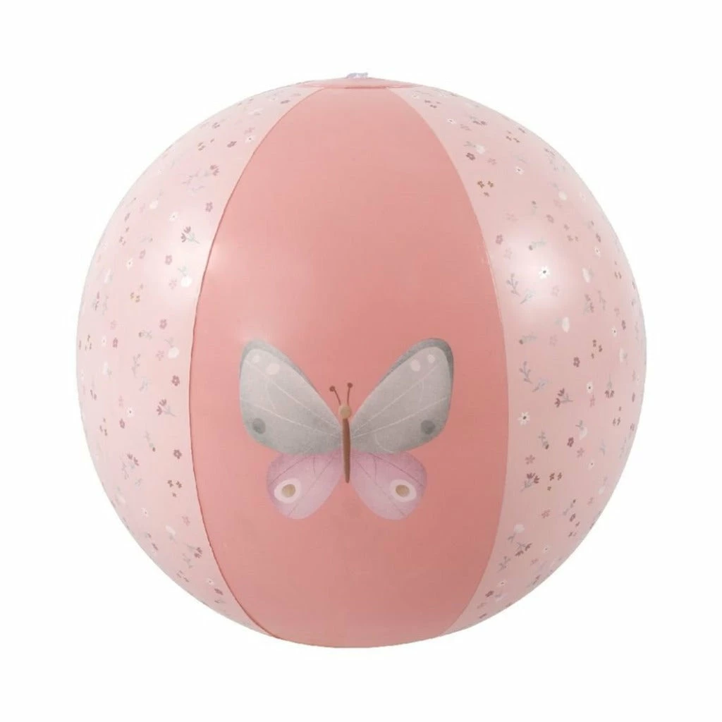 This beach ball is easy to inflate and offers hours of fun. The ball features familiar, Little Pink Flowers-themed illustrations. Lilly the butterfly graces one side of the ball, and the other side shows cheerful daisies.