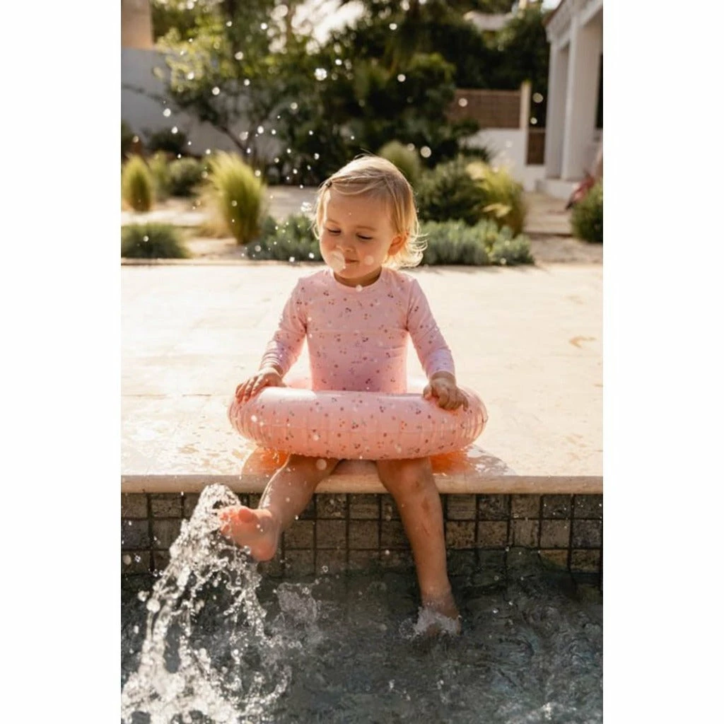 Bobbing around in the water is an absolute joy with the Little Pink Flowers swim ring.