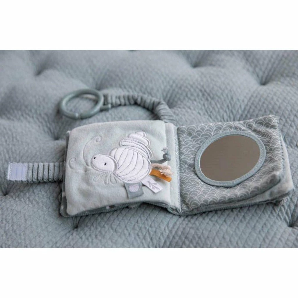 The Little Dutch Soft Activity Booklet features happy underwater animals and many different materials + textures. Babies enjoy discovering the activities in the booklet, which include a mirror, squeaks and crinkle fabrics.