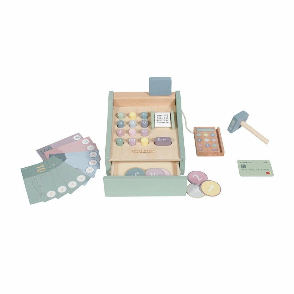 The cute Little Dutch Wooden Toy Cash Register is perfect for hours of enjoyable role play at the supermarket.