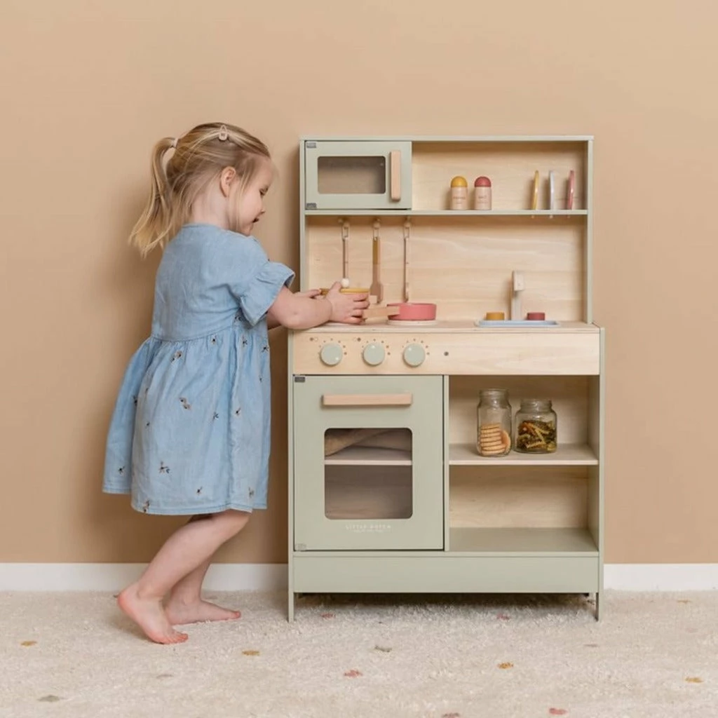 What’s cooking little chef? Prepare the tastiest dishes in this adorable wooden kitchen.