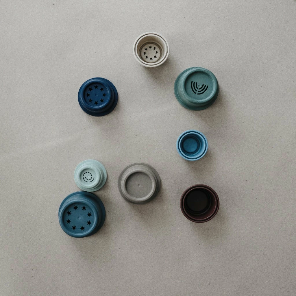 - Stacking toys help develop both the body and the brain starting around six months