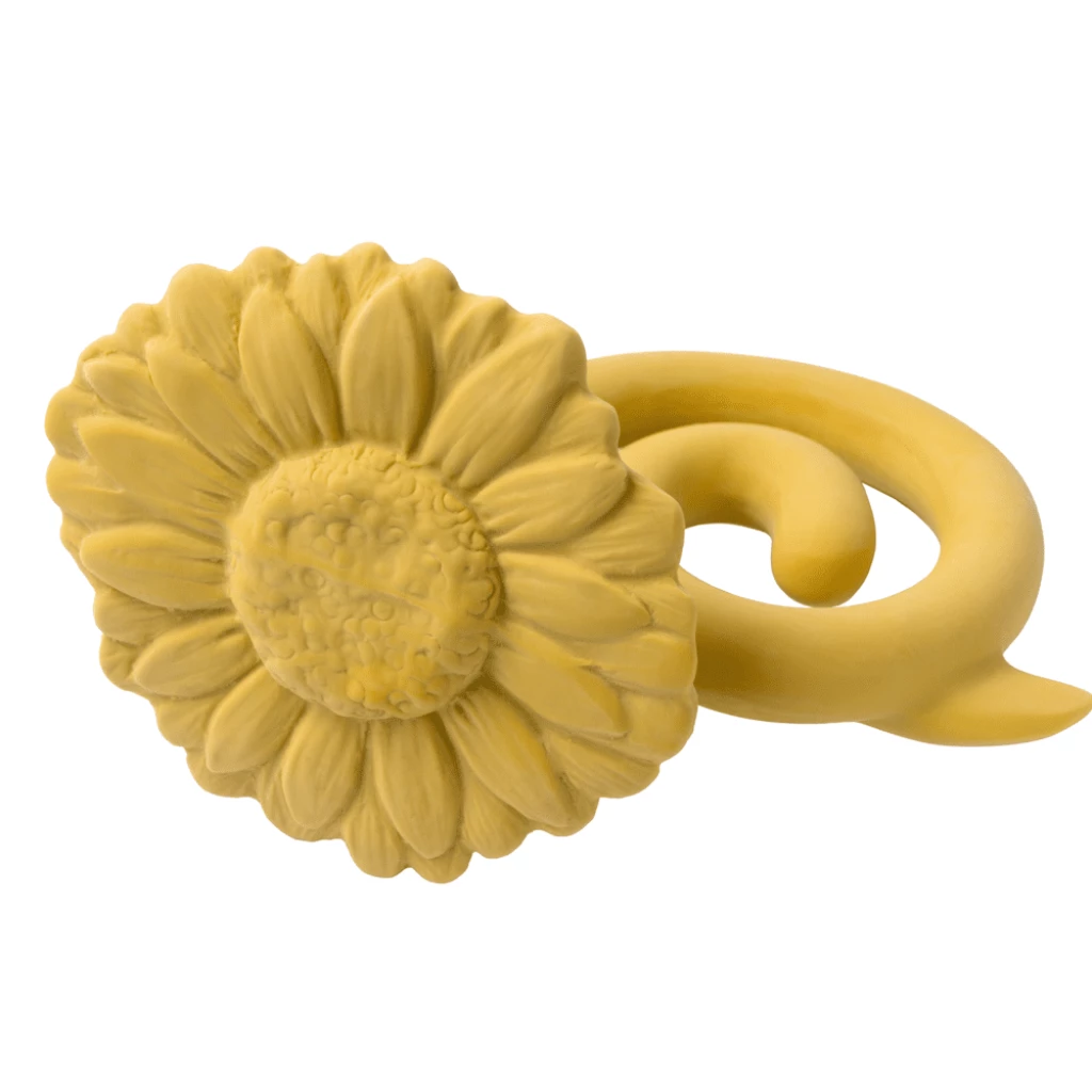 The Natruba Sunflower is easy to grip for small hands with different surfaces to encourage sensory play and the soft natural rubber easily satisfies all stages of sore gums.