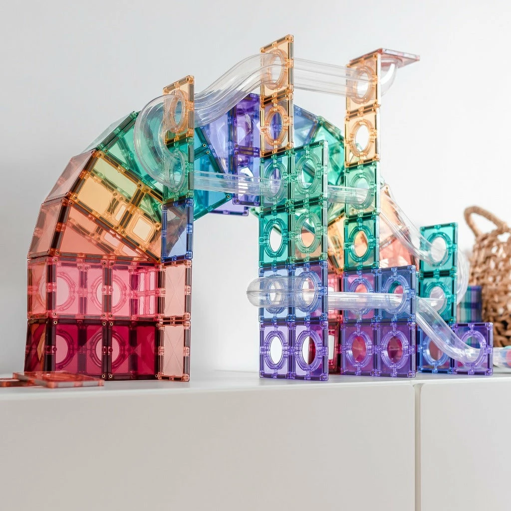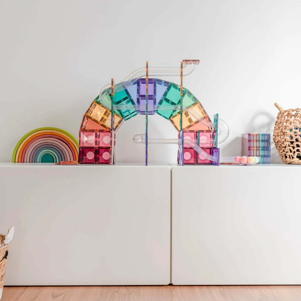 With this open-ended Pastel Ball Run Pack, the whole family can enjoy endless ball run designs PLUS explore the limitless potentials for your ball run pieces – from sensory runs, sorting tubes, mazes, and so much more!