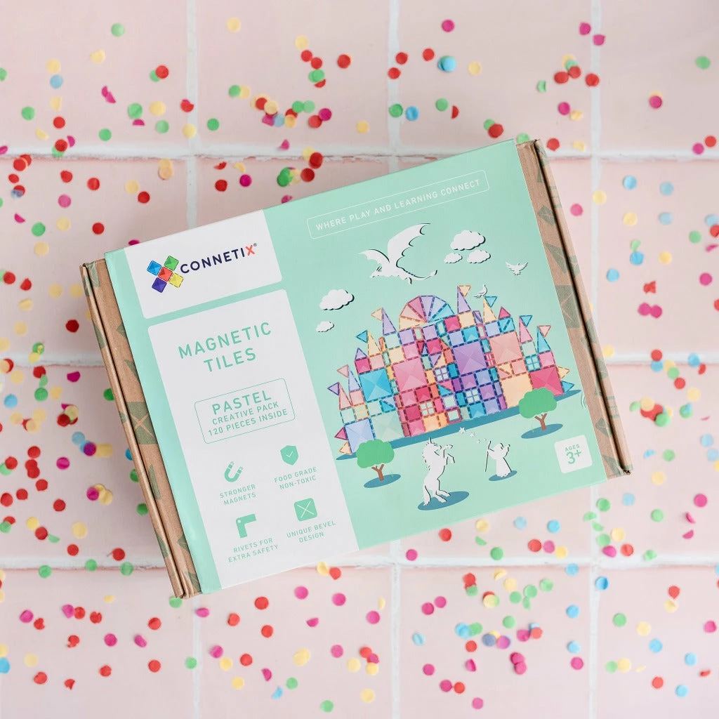 Designed to encourage hours of limitless creativity, fun and learning through PLAY, our Pastel Creative Pack features a variety of shapes in 8 pastel colours. It is a great starter option for family play, building BIGGER Connetix creations and expanding the range of colours your children recognise!