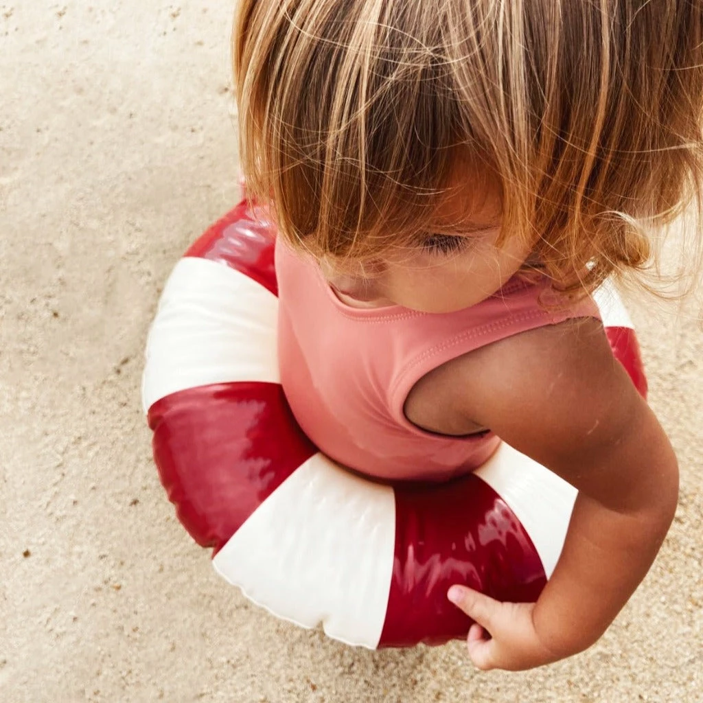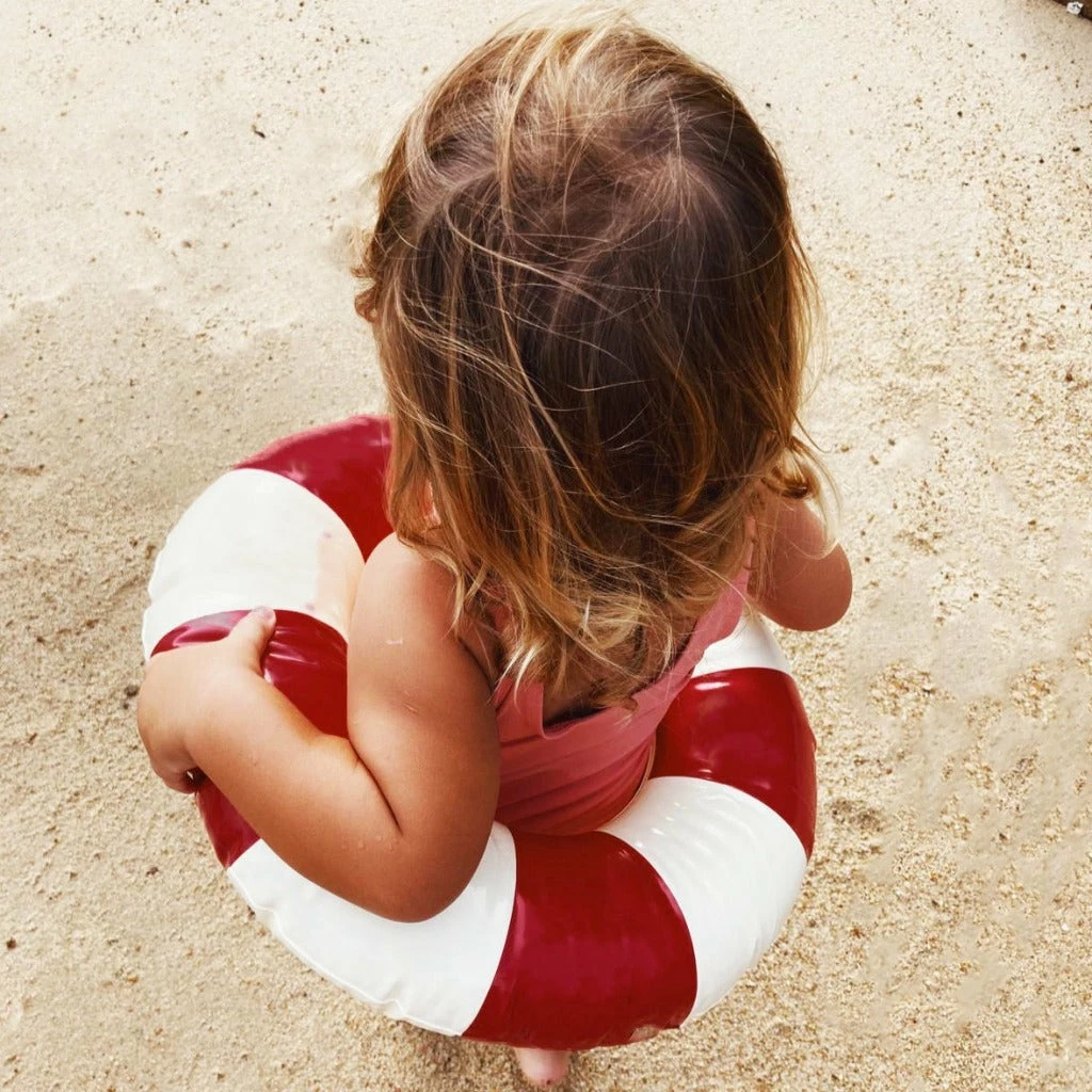 The Petites Pommes swim ring is a reborn childhood classic – made with the attention to detail we have strived to make it last for seasons. Our characteristic striped floats come in a range of beautiful colours to complete any summer look!