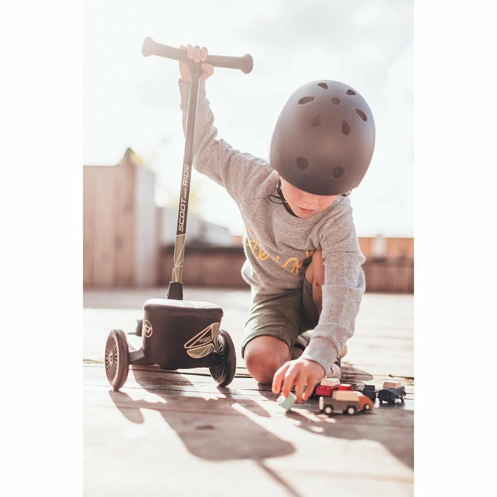 Highway Kick 2 lifestyle is a three-wheeled balance scooter of the Austrian brand Scoot & Ride, distinguished by its original design, including unique graphics and details such as the practical storage box on the front.