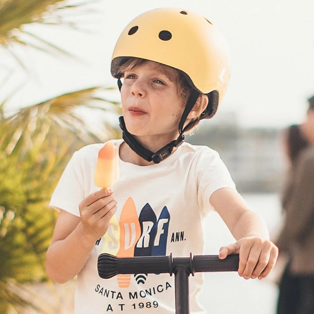 The Scoot and Ride helmet is made from a mat PC shell on the outside and EPS on the inside. The inside finishing is of high quality with soft fleece HF technology padding with Scoot and Ride branding.